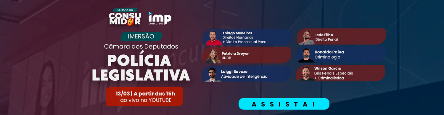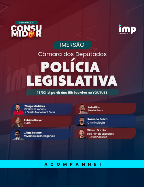 Presencial 40% OFFDia IMPerdível Câmara dos Deputados - Técnico Legislativo - Policial Legislativo (EVENTO PRESENCIAL)