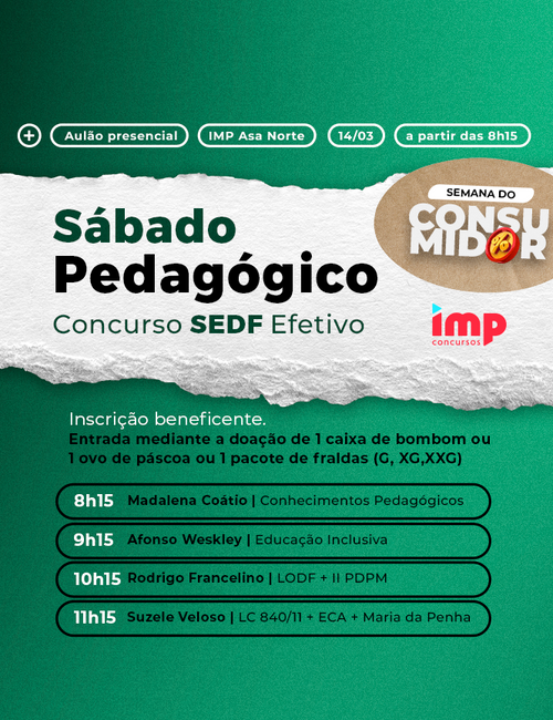Presencial Asa Norte Turma confirmada 20% OFFSEDF – PROFESSOR EFETIVO – PEDAGOGIA (GMT-7584)