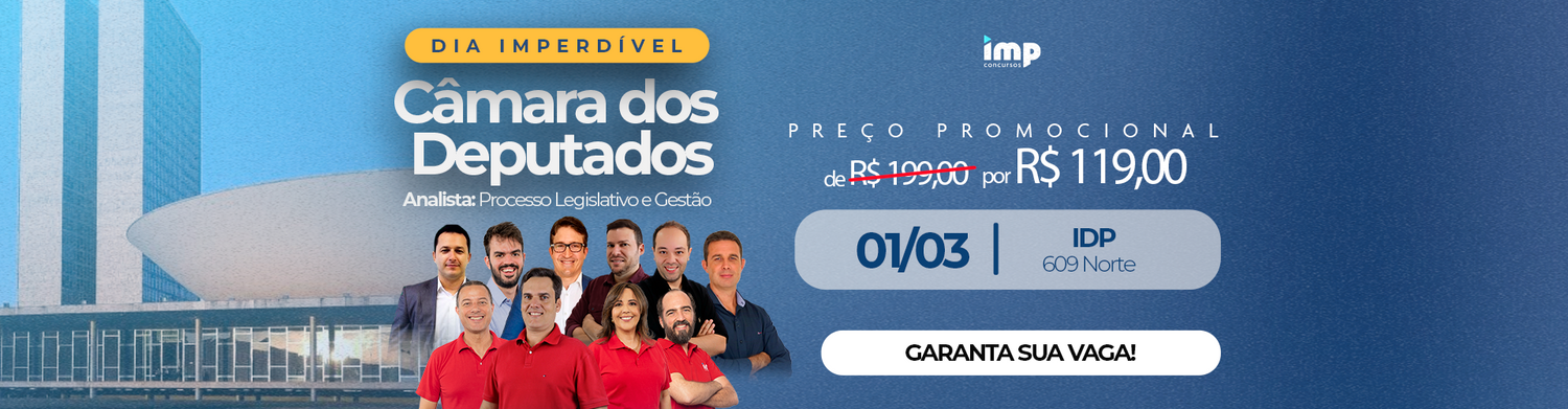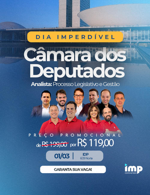 Presencial 40% OFFDia IMPerdível Câmara dos Deputados - Analista Legislativo - Processo e Gestão (EVENTO PRESENCIAL)