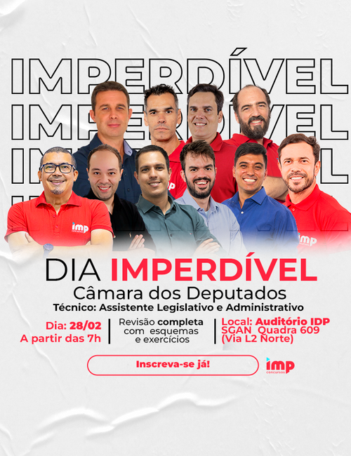 Presencial 40% OFFDia IMPerdível Câmara dos Deputados - Técnico Legislativo - Policial Legislativo (EVENTO PRESENCIAL)
