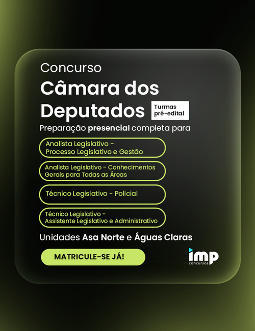 Presencial Asa Norte Turma confirmada 25% OFFCÂMARA DOS DEPUTADOS - ANALISTA LEGISLATIVO - PROCESSO LEGISLATIVO E GESTÃO (GNT-7440)